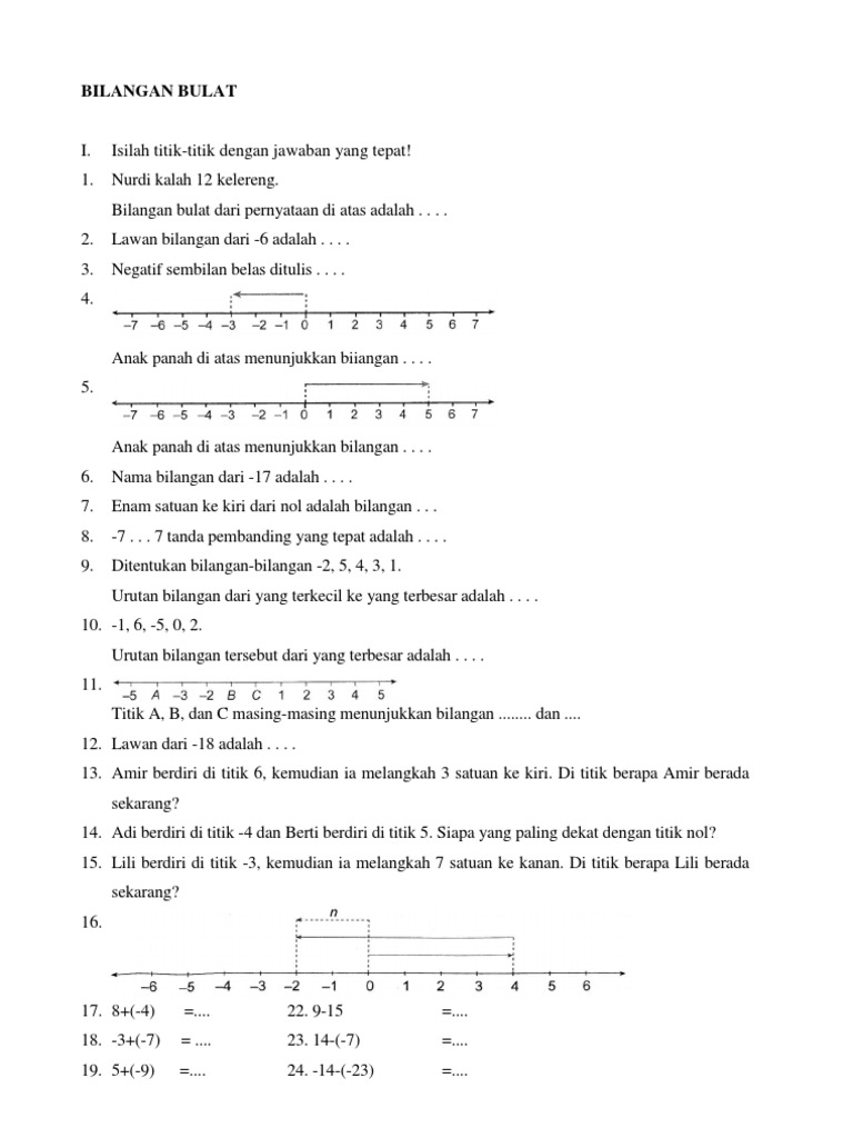 Gambarlah Anak Panah Dari Angka 0 Sejauh 3 Satuan Ke Kiri Sampai