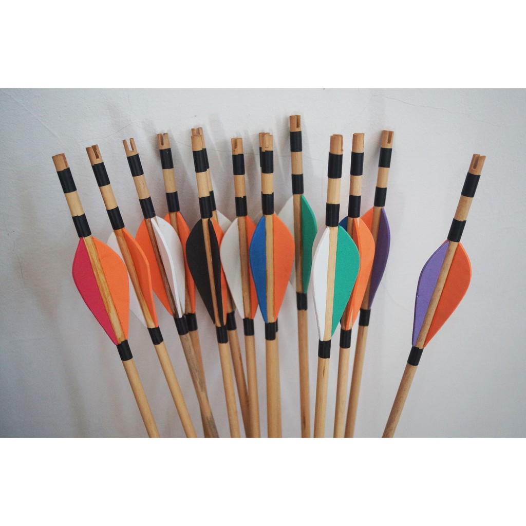 Jual Anak Panah Bambu Per 6 Pcs Vanes Spon Poin Natural Arrow