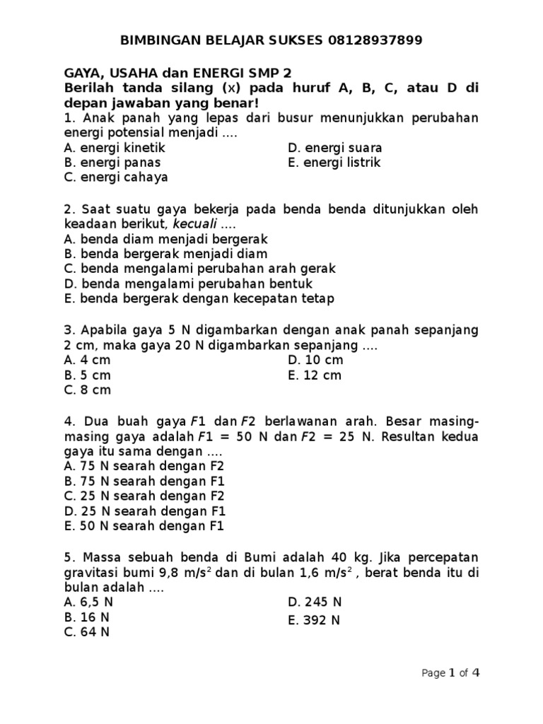 Soal Usaha Energi Smp