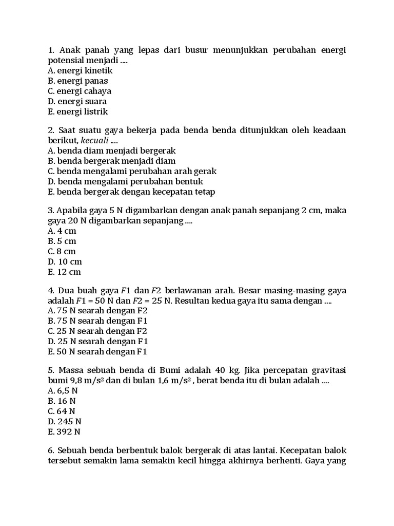 Latihan Gaya Usaha Energi