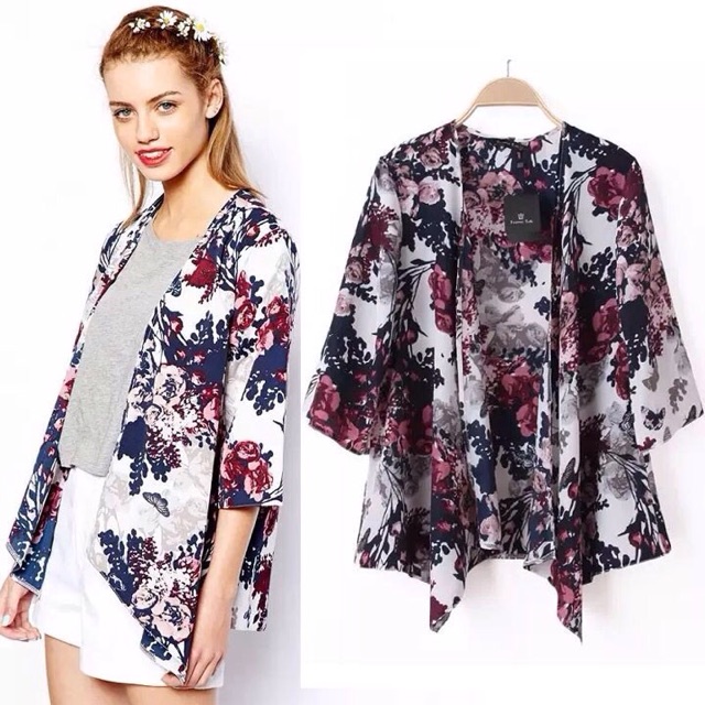 Cardigan Kimono Motif Bunga Cantik Import Baru Murah Shopee