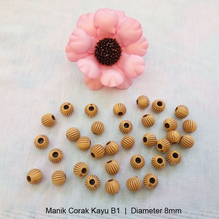 Manik Plastik Corak Kayu Bentuk Bulat B1 Isi 100pcs Bahan