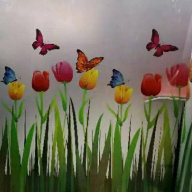 Per Meter Fiber Pagar Corak Bunga Tulip Warna Warni Tebal Bagus