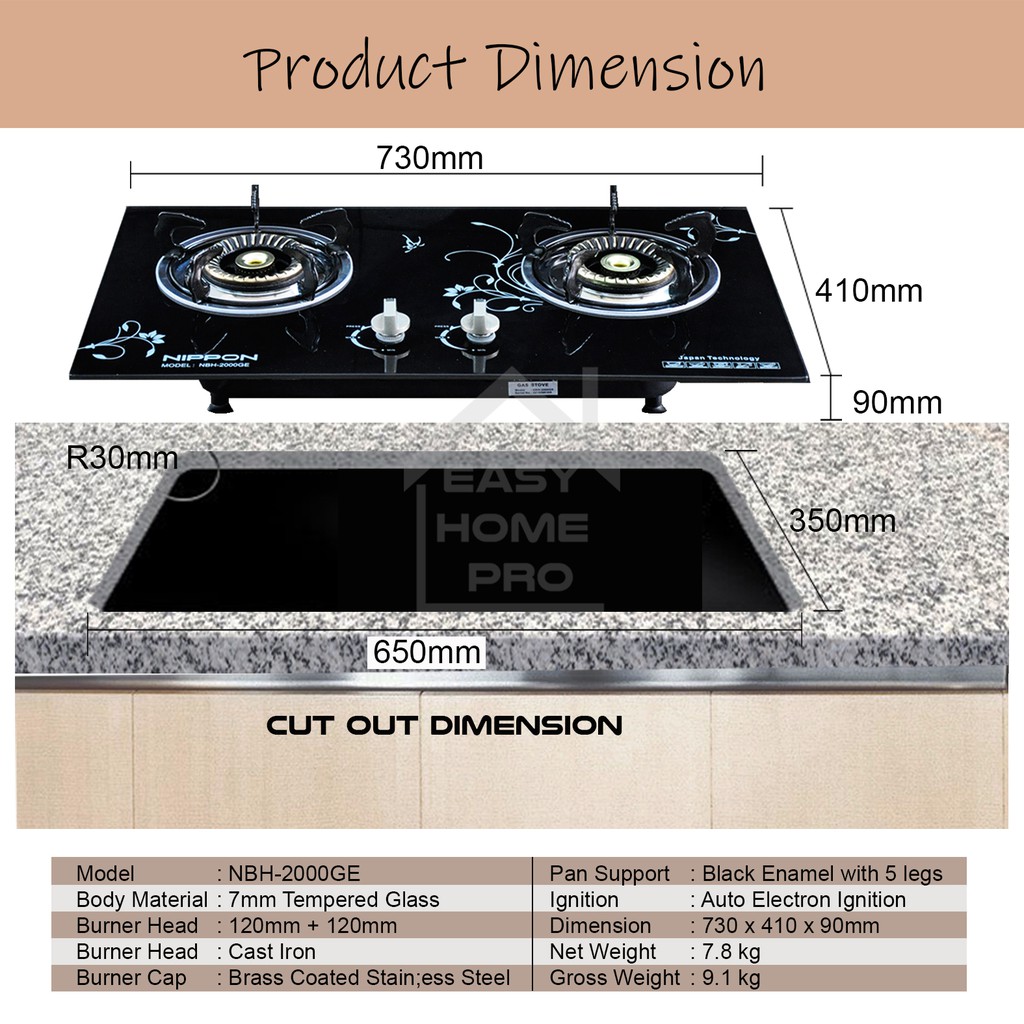 Nippon Nbh 2000ge Double Burner Built In Hob Shopee Malaysia
