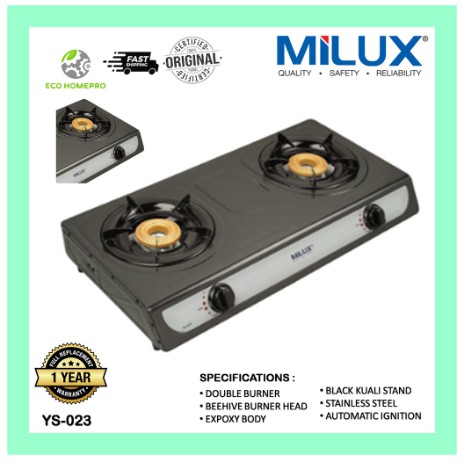 Milux Double Burner Gas Cooker Epoxy Body Dapur Gas Stoove Ys 023