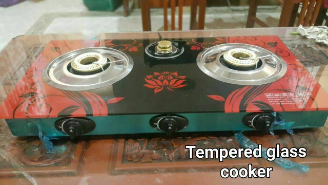 Dapur Gas Kaca 3 Tungku Gas Stove With Tempered Glass Cover