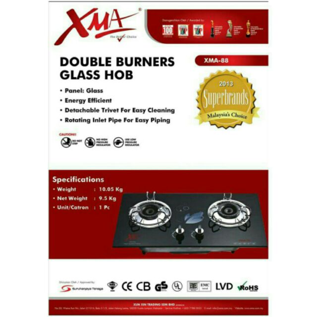 Original Xma Glass Double Gas Stove 828gh 1 Year Xma Malaysia