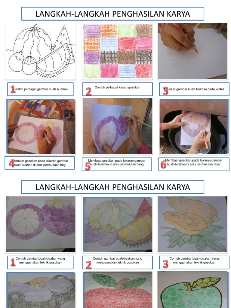Dunia Seni Visual Tahun Dua Menggambar Menggunakan Teknik Gosokan