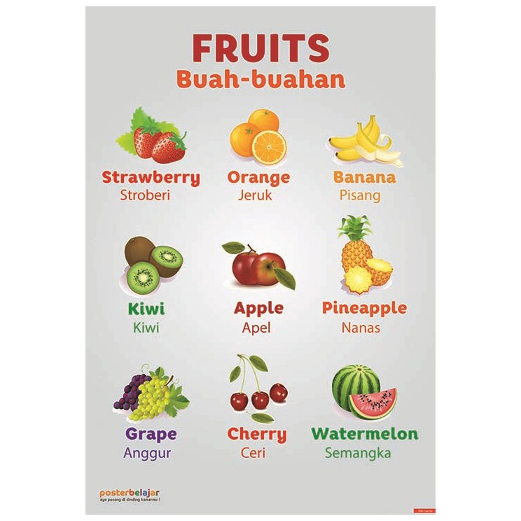 Poster Belajar Anak Tk Paud Media Belajar Mengenal Buah Buahan Media Mainan Edukasi Diskon Shopee Indonesia
