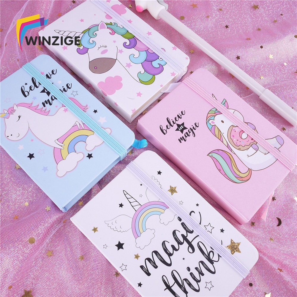 Winzige Buku Agenda Planner A7 Hard Cover Motif Unicorn Lucu Untuk