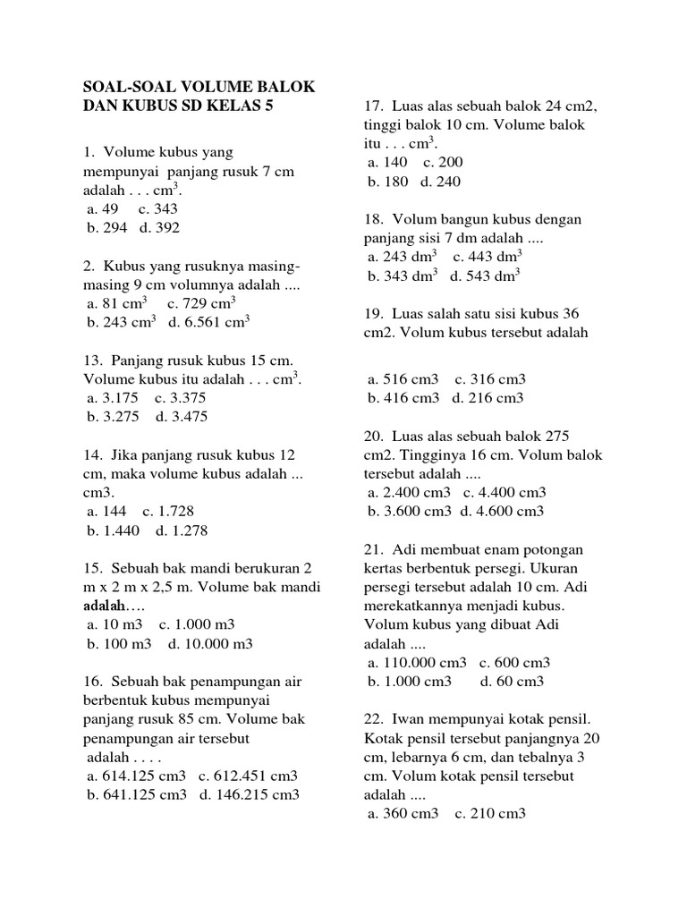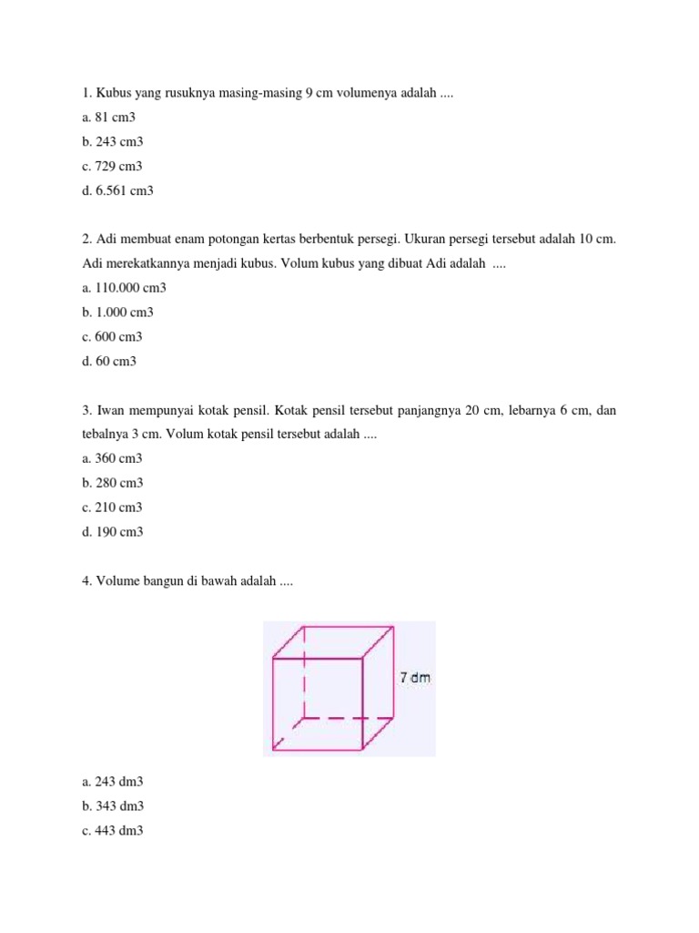 Latihan Soal Volume Balok Dan Kubus
