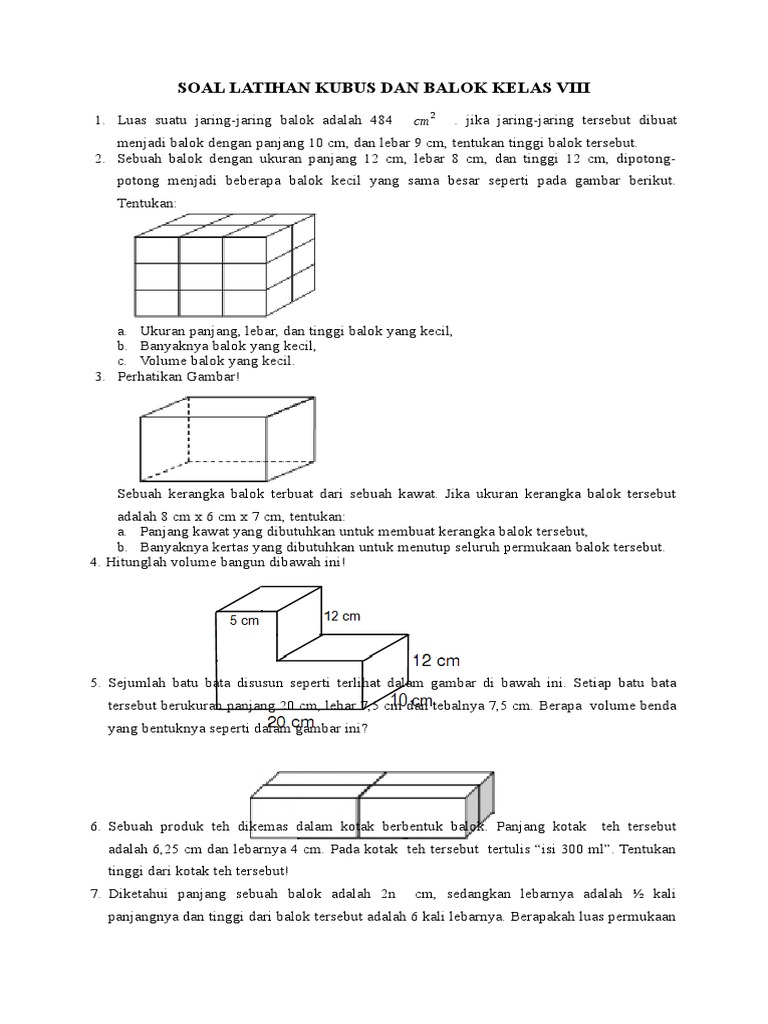 Soal Latihan Kubus Dan Balok Kelas Viii
