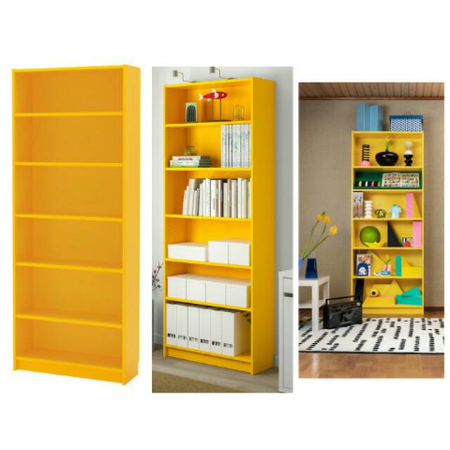 Rak Buku Billy Warna Kuning Bahan Particleboard Ukuran