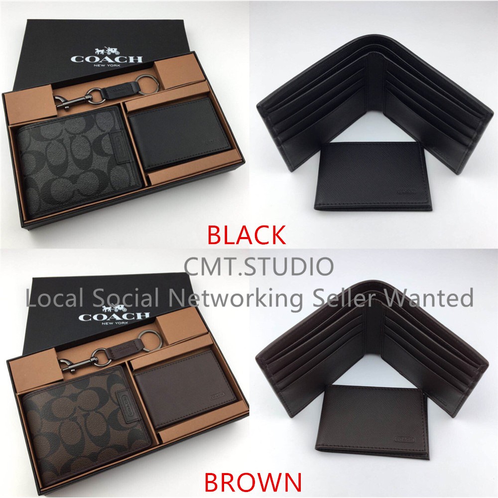 Coach 74736 Dompet Lelaki Dompet Pendek Dompet Lipat Kotak Hadiah