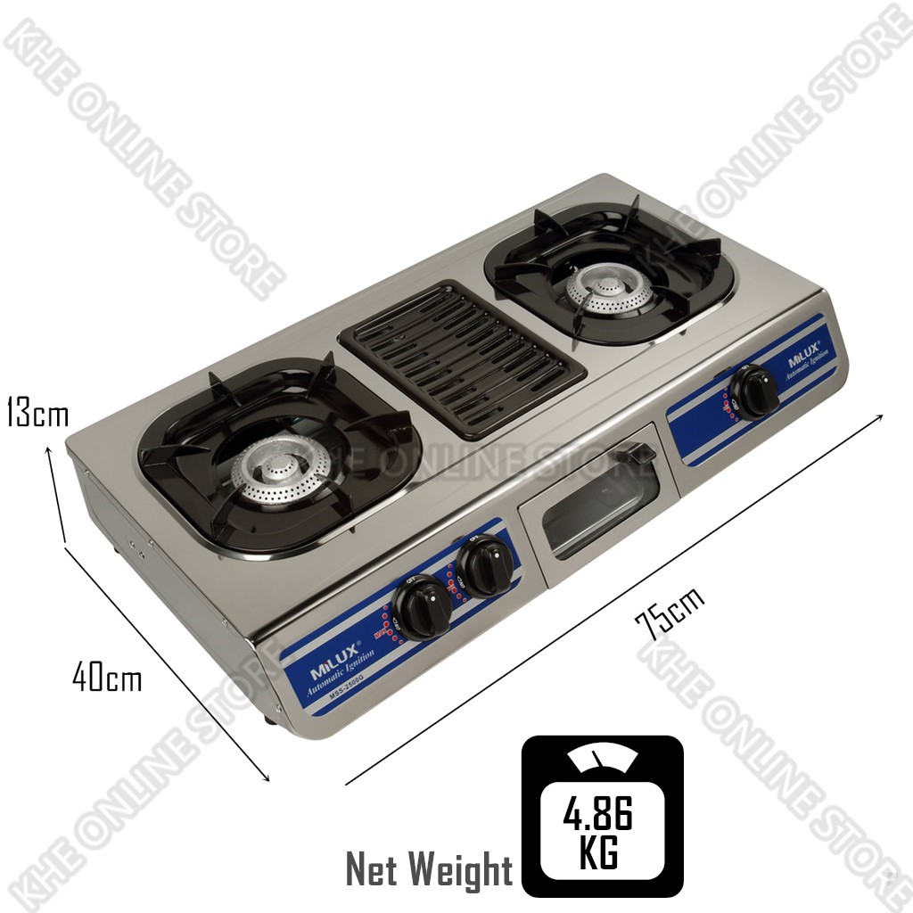 Milux Double Burner With Grill Gas Cooker Dapur Gas Panggang Mss