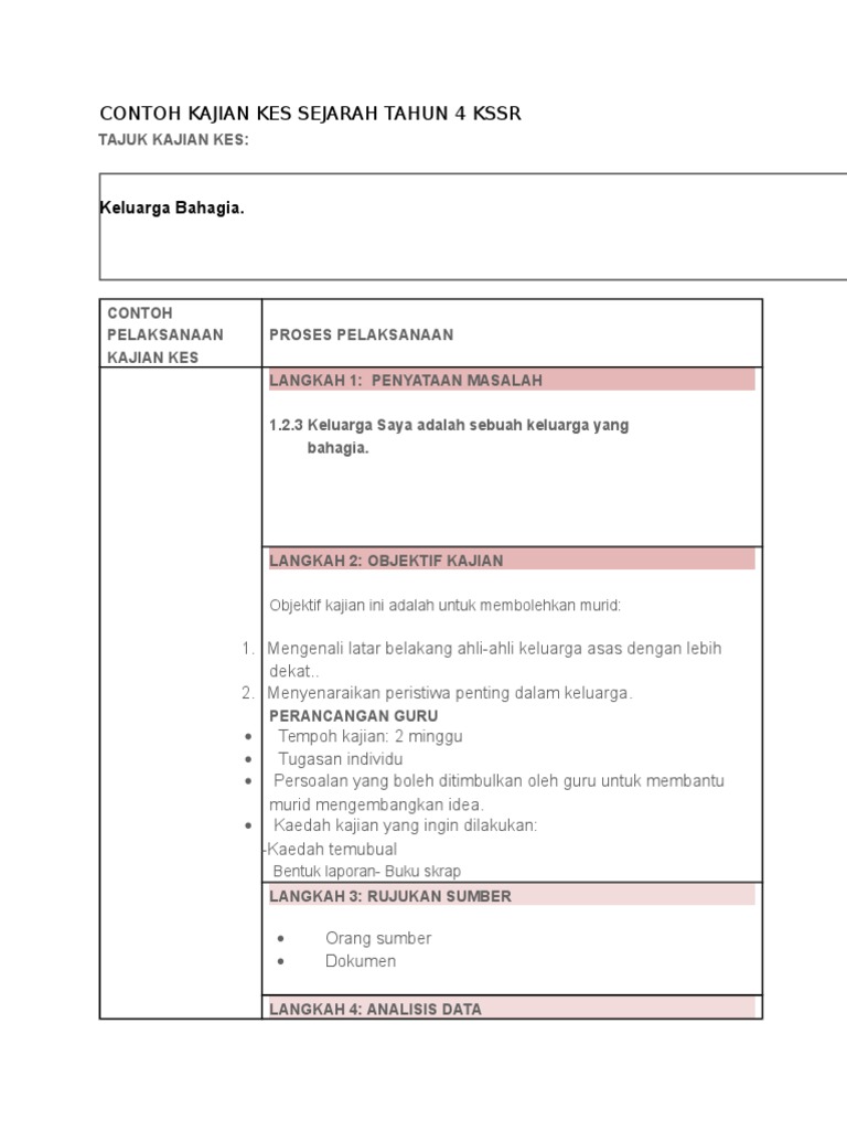 Contoh Kajian Kes Sejarah Tahun 4 Kssr