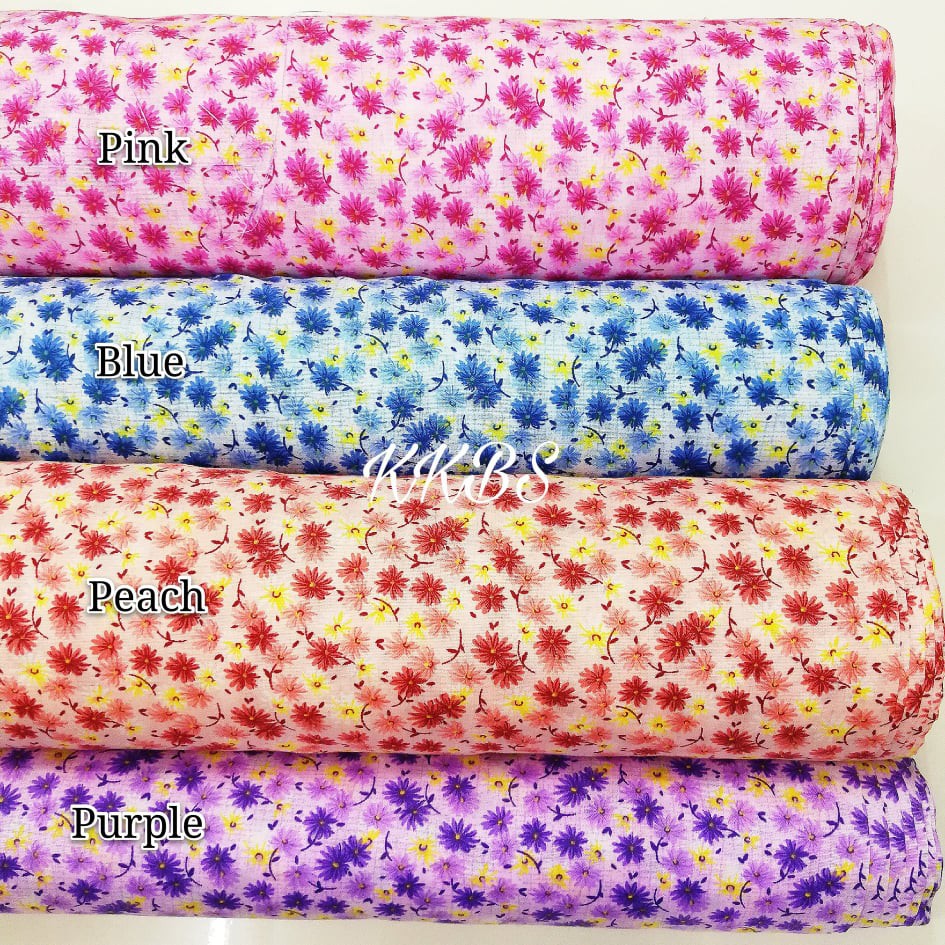 Kain Ela Cotton Corak Bunga Kecil Warna Pastel 4 Meter Design