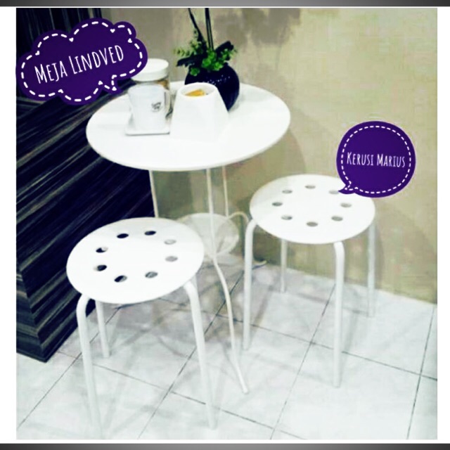 Ikea Set Side Table Linved With 2 Stool Set Meja Linved Dengan 2