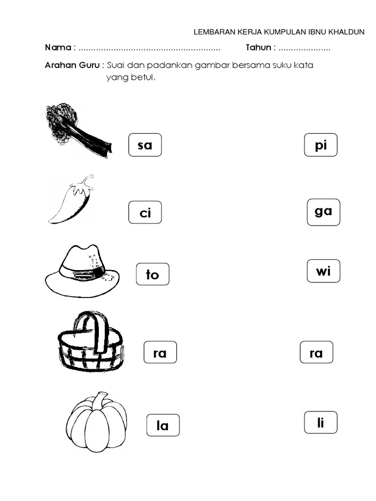 Lembaran Kerja Kemahiran 4 Suku Kata Terbuka Kv