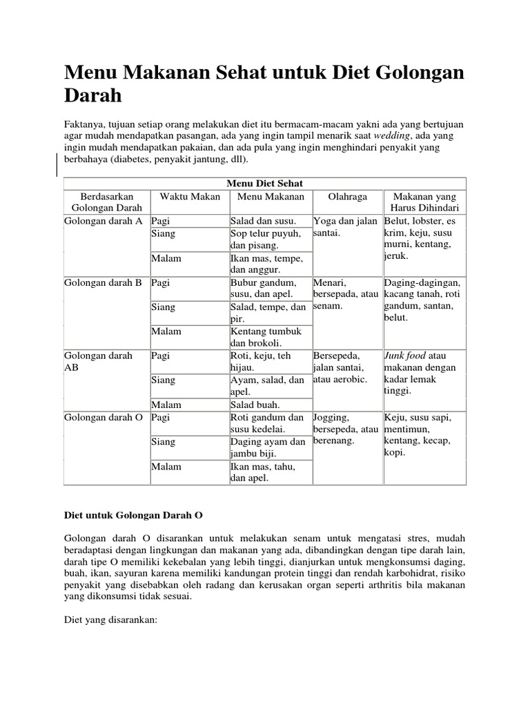 Sehat Ideal Tubuhku Diet Sehat Golongan Darah O
