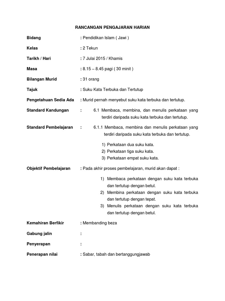 Anak Saya Bijak Suku Kata Terbuka Dan Tertutup Jawi
