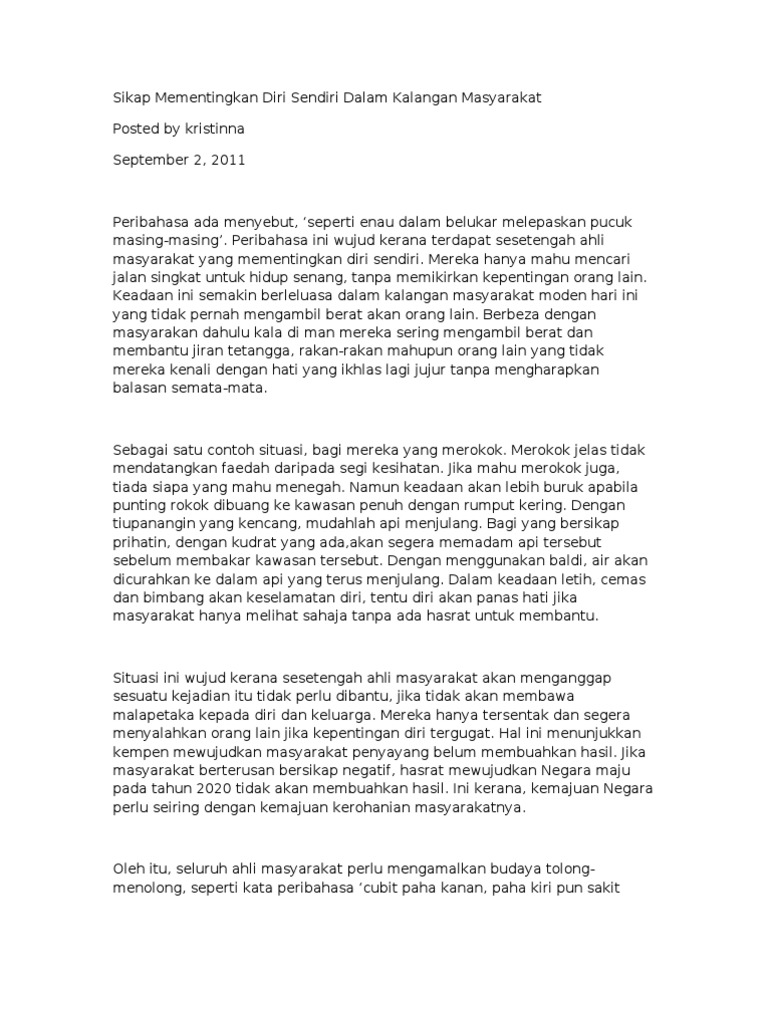 Sikap Mementingkan Diri Sendiri