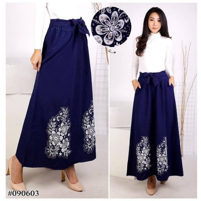 Jual Rok Denim Panjang Corak Bunga Beverly Jakarta Barat Jkfashion Tokopedia