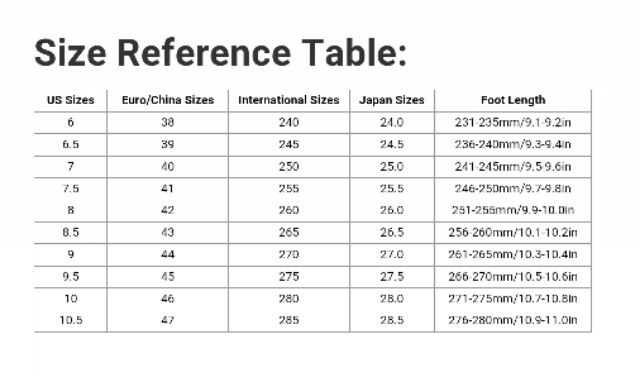 Size Reference Table For Men Shoes Jadual Saiz Kasut Lelaki
