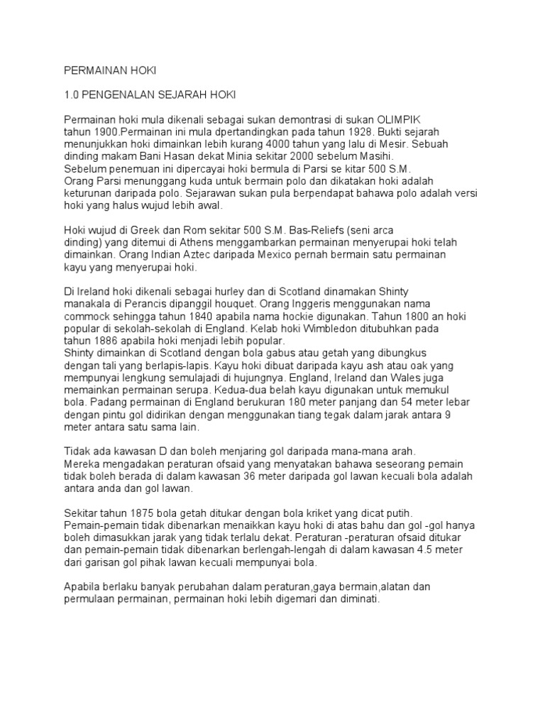 Doc Sejarah Permainan Hoki Zhafran Sabarudin Academia Edu