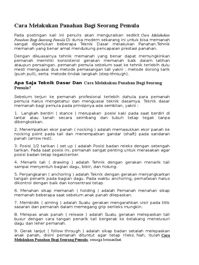 Cara Melakukan Panahan Bagi Seorang Pemula Docx Document