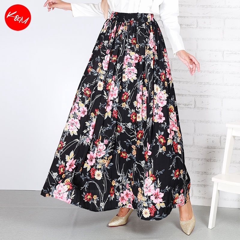 Skirt Labuh Wanita Pleated Corak Bunga Women Fit 3xl A Line Floral