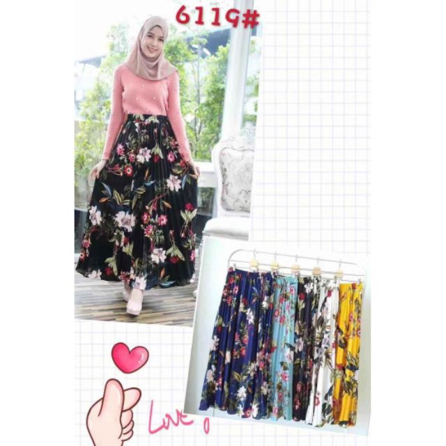 Skirtbungajamal Hana Skirt Labuh Corak Bunga Dan Plain