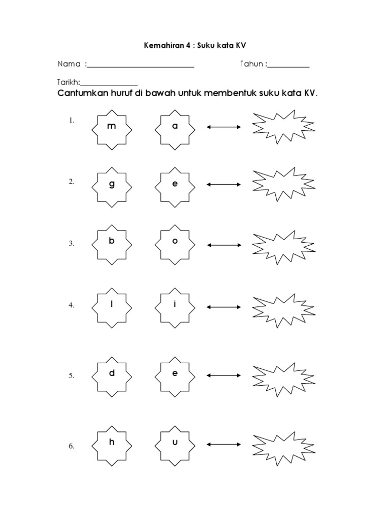 Lembaran Kerja Kemahiran 4 Suku Kata Terbuka Kv