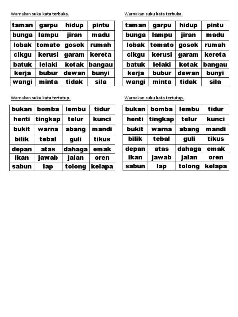 Contoh Suku Kata Terbuka Materi Pelajaran 1